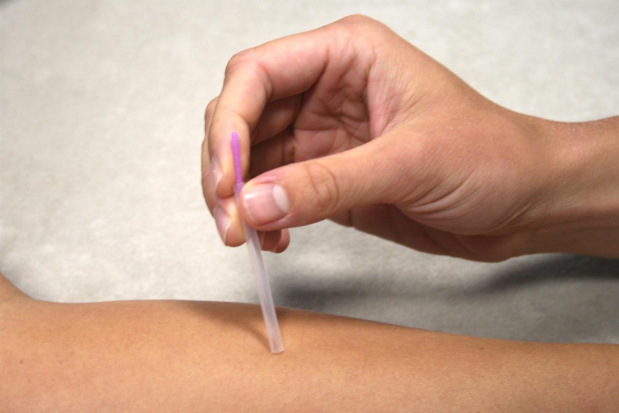 De steriele naaldjes die voor Dry Needling worden gebruikt, zijn zeer dun. De therapeut bij Fit & Fysio lokaliseert eerst de strakke streng en het triggerpoint. Vervolgens wordt het triggerpoint door de vingers vastgezet waarna het naaldje snel door de huid wordt getikt, wat vrijwel pijnloos is. Daarna wordt het naaldje door de spier naar het triggerpoint gebracht, wat een dof of zeurend gevoel geeft. Bij het bereiken van het triggerpoint reageert de spier met een Local Twitch Response, die aanvoelt als een schokje of plaatselijke kramp. De therapeut beweegt het naaldje op en neer om zoveel mogelijk vezeltjes van het triggerpoint los te maken. Afhankelijk van de spier en het aantal triggerpoints, kunnen de twitches zeer hevig zijn. Ook kan de uitstralende pijn, veroorzaakt door het triggerpoint, tijdens de behandeling gevoeld worden.